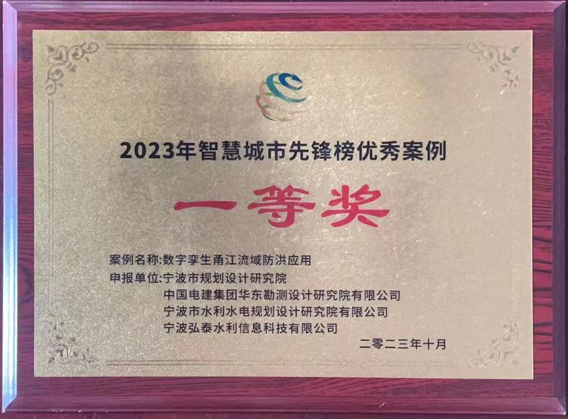 近日,我院與寧波市規(guī)劃設(shè)計(jì)研究院、華東勘測(cè)設(shè)計(jì)研究院有限公司、寧波弘泰水利信息科技有限公司共同承擔(dān)的“數(shù)字孿生甬江流域防洪應(yīng)用”項(xiàng)目作為寧波智慧城市創(chuàng)新應(yīng)用成果,精彩亮相“第十六屆中國(guó)智慧城市大會(huì)”,并榮獲2023智慧城市先鋒榜優(yōu)秀應(yīng)用案例一等獎(jiǎng),同時(shí)入選《中國(guó)智慧城市優(yōu)秀應(yīng)用案例集(2023)》,已由中國(guó)電力出版社出版發(fā)行。
