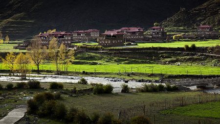 湛藍(lán)的天空下,雄鷹在盤旋,牛羊在安詳?shù)芈匠圆?,靜靜的小河在山邊蜿蜒流淌,充滿綠意的白楊樹在風(fēng)中搖曳,藏式民居不時(shí)升起縷縷炊煙,寂靜、空曠的原野深處偶爾會(huì)傳來(lái)幾聲狗叫高原的陽(yáng)光又賦予這幅風(fēng)景畫凝重的色彩這樣的畫面叫人心醉,讓人留戀忘返從折多山腳下至新都橋鎮(zhèn),再至塔公草原,處處都是入畫的美景,不愧稱為“攝影家的天堂”。
