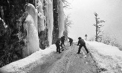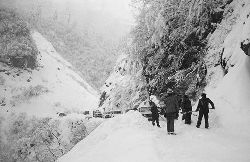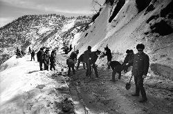 一九九七年十一月二十四日,連續(xù)多日大雪,把整個二郎山裹得嚴(yán)嚴(yán)實實,白茫茫一片。陣陣山風(fēng)吹過,大霧就像瀑布一樣,從山頂直往下翻涌傾瀉。 一大早,州交通局打冰除雪排險的干部職工就從二郎山管理站直奔山埡口。載有防滑砂的大貨車穿迷霧,繞山梁,向山頂埡口疾馳。由于氣溫太低,霧又大,車上的擋風(fēng)玻璃很快就結(jié)下了冰,路面打滑非常嚴(yán)重。前面車輛堵了起來,排險人員只好下車步行。 大霧彌漫,能見度很底,陰霾的天空又飄起了紛紛揚(yáng)揚(yáng)的雪花,剌骨的寒風(fēng)陣陣襲來,只聽見車蓬布在風(fēng)中“嗶剝”作響,卻看不見前面到底堵了多少車。排險人員只好相互攙扶踩著冰滑的邊路艱難地向行。好不容易來到堵在最前面的車子面前。原來是一輛載著原木的東風(fēng)牌大貨車側(cè)滑在公路上,把整個公路堵死了。 局領(lǐng)導(dǎo)當(dāng)即指揮大家用鋼釬、鐵鎬和鋤頭處理冰道,沒有撮箕,大家借來加水桶裝運(yùn)冰雪……氣溫仍在急劇下降,剛從雪堆里刨出來的路,又被結(jié)起一層冰,就像地面上澆上了油,這就是冰雪道上有名的“桐油凌”。 有二位老同志不顧年老體弱,積極參與打冰除雪,一個在打冰時,被彈起的冰碴把腦門劃了一個口子,鮮血直往外冒。有人想幫他包扎,他堅決不干,自己就用手帕按住,把帽子向下拉蓋住傷口就算了。血從手帕中浸透出來,與眉毛上的冰凌結(jié)在一起。氣溫太低,冰層太厚,十字鎬每挖一下,多數(shù)情況下也就是挖下一個白點而已。不一會兒,另一位老同志已是滿頭大汗,大家勸他休息一下,他卻說:趁著現(xiàn)在雪不是太大,早點把主道上的冰雪多除點,過往二郎山的車輛就多一份安全。 排險人員的手凍紅了,刨冰雪碰傷的指頭還流著鮮血,身上蒸發(fā)的熱氣,把衣領(lǐng)口、袖子口和褲子口結(jié)成了冰,可是,誰也沒有吭一聲。 ……受堵車輛終于向前開動了。 風(fēng),越刮越猛,雪,越來越大。 防滑車在冰雪道上艱難地向前爬行著,車箱上面的職工們揮舞的洋鏟向路面撒著防滑砂。一路上風(fēng)絞雪,防滑車象一頭不聽使喚的牛,顛簸、亂竄,好不容易才來到260(二郎山最險處),對這里“桐油凌”路面進(jìn)行重點防滑處理后,防滑車又返回來,開始向山頂進(jìn)發(fā)……風(fēng)雪二郎山上打冰除雪、防滑排險,看似沒有驚天動地的壯舉,身臨其景才知其艱難辛苦。難怪當(dāng)年每每經(jīng)過二郎山冰天雪地奇險路段的車,都會向風(fēng)雪中屹立路邊的交通系統(tǒng)排險保暢通的職工們鳴笛致敬,風(fēng)雪中的那份情彌足珍貴。 川藏線上的老司機(jī)傳下來一首傷心的順口溜:“車過二郎山,如闖鬼門關(guān),萬幸不翻車,也要凍三天!”其險峻實為罕見,尤其是途經(jīng)二郎山260(公路公樁)處,曾被淡虎色變的人稱為“鬼招手”的險路段。 1983年1月3日,有著安全行車44萬公里記錄的一位駕駛員開著輛嶄新的東風(fēng)牌貨車,同行還有兩名職工,夜行二郎山,在彌天大霧中神秘地“失蹤”了。十五天后,搜山的人才用望遠(yuǎn)鏡看到260公里路樁處的山崖下,有一塊汽車破篷布掛在樹枝,猶如招魂的凄厲幌幡在冷風(fēng)中招搖晃動。鋼纜繩吊著搜山的人下到崖下400米深處的谷底。扒開一座座雪堆,叫人汗毛倒豎:雪堆下,盡是廢大梁、爛車廂、銹車頭和支離破碎的汽車,足有一個汽車連!一輛不知埋了多久的卡車廂里牛肉已腐爛,駕駛室里坐著三具發(fā)黑的僵尸……其狀慘不忍睹!