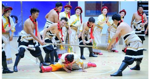 區(qū)別于傳統(tǒng)的民族舞蹈表演,在運動會中的表演項目,需含有競技成分,以把具有民族特色的運動保留下來為己任。快來跟隨記者的鏡頭,回到9月3日康定民族體育館的賽場上,看看運動健兒們的表現(xiàn)吧。特別提醒,9月4日晚8時,最后一場表演項目比賽將在康定民族體育館上演,敬請速來圍觀。