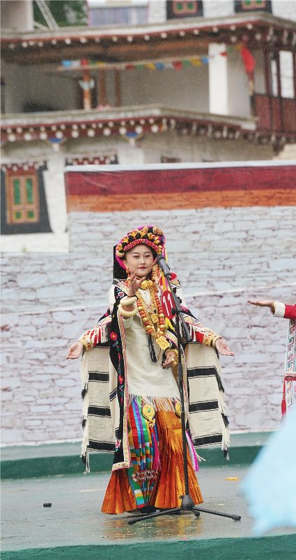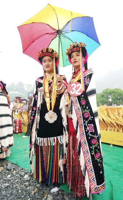 比賽開始不久,現(xiàn)場下起了小雨,但絲毫沒有影響熱烈氣氛。臺上的佳麗們,略施粉黛,穿著承載著嘉絨風(fēng)情文化的民族盛裝,自我介紹,優(yōu)雅展示。臺下,則是鄉(xiāng)民齊聚,熱情高漲。大家紛紛到場,為佳麗們加油助威。據(jù)介紹,丹巴出美女始于漢代的東女國時期。古時每年農(nóng)作物收獲的時節(jié),丹巴各村各寨都要舉行盛大的選美和祭祀活動。