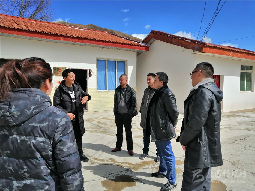 地上有一層白白的雪,錯落有致的藏式房屋,還有魔幻的藍(lán)天,儼然是一幅鑲嵌的美景!