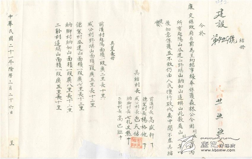 布告張貼出去后,大渡河流域康定縣屬的前溪、德笨、納腳、威公、二朗等五個村長向縣政府寫出了由自己親自簽名畫押的“具結(jié)書”,把自己村落所在地的林林面積造出表冊“具呈”,并保證“以后加以保護(hù),不敢仍由人民自由砍伐”。