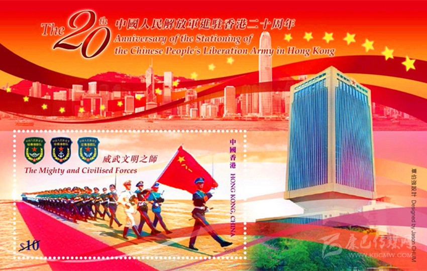 6月20日發(fā)行的《中國(guó)人民解放軍進(jìn)駐香港二十周年》郵票。