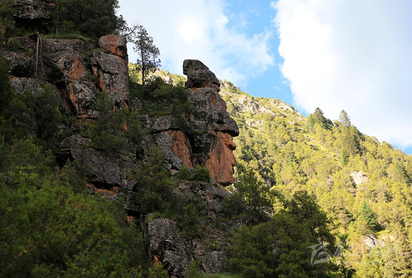 最近,藏族著名攝影家、藏地陽光雜志主編根秋多吉先生與藏地陽光記者丁真尼瑪,在德格縣柯洛洞鄉(xiāng)多爾家溝采訪時(shí),拍攝到了一組奇特的作品。鏡頭中這組山巖由于自然風(fēng)化的原因,形狀構(gòu)造像極了傳奇的嶺·格薩爾王。