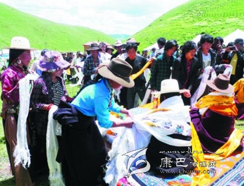 剛走進(jìn)宗塔壩子,記者便意識(shí)到一個(gè)人想象力的貧乏,現(xiàn)實(shí)中的宗塔草原以一種與眾不同的美把一個(gè)人的目光悄悄托起。四周長滿牧草的小山像溫順的花瓣,靜靜包裹著那一片平坦的壩子,如果一個(gè)人眺望的目光足夠高足夠遠(yuǎn),山和壩子的造型會(huì)讓人聯(lián)想到一朵蓮花,而壩子里小點(diǎn)般的帳篷就像一顆顆蓮子,世世代代的宗塔人便在這蓮花般盛開的天地里穿行、繁衍生息。
