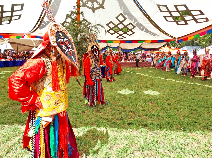 初次看到巴塘藏戲是康巴衛(wèi)視藏歷春晚,原以為是寺廟舞蹈,在唱聲杳杳里類似川劇的喉腔讓我覺得新奇,于是找些資料看看了巴塘藏戲介紹。藏戲的開山鼻祖唐東杰布。藏民歷來把他看作是創(chuàng)造藏戲的戲神和修建橋梁的鐵木工匠的“祖師”,是藏族人民心目中智慧、力量的化身。他將佛教經(jīng)典中的傳記同民間傳說、神話故事等內(nèi)容融在一起,創(chuàng)作出一種具有人物性格和舞蹈、唱腔相結(jié)合的表演藝術(shù),使過去單一的跳神舞逐漸地戲劇化,表現(xiàn)手段也不斷加強,并從宗教儀式中分離出來,形成了藏劇藝術(shù)的雛形。