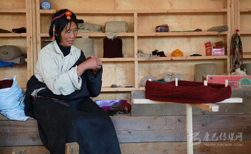 “庫”,這層細(xì)軟的底絨被表層粗糙的牦牛毛所覆蓋,且本身細(xì)長彎曲,無法用剪刀方便地剪下,故而只能手工采集。從每年春天采集牦牛、羊絨,到捻成線,到染成不同顏色,再到織成一匹布,整個(gè)過程全由扎西巴姆和她帶領(lǐng)的幾個(gè)藏族婦女手工完成,全部學(xué)會(huì)這門技術(shù)需要3—4年,現(xiàn)在麥宿只有4人全部掌握。但與這費(fèi)力耗時(shí)的工藝形成殘酷對照的是,手工織物在機(jī)器快速生產(chǎn)的現(xiàn)代社會(huì),市場經(jīng)營可謂舉步維艱。雖然工巧明系創(chuàng)立的平臺(tái)專門收購編織班做出來的產(chǎn)品,但購買的人并不多,編織班創(chuàng)建至今,所得收益只夠勉強(qiáng)維持平衡。