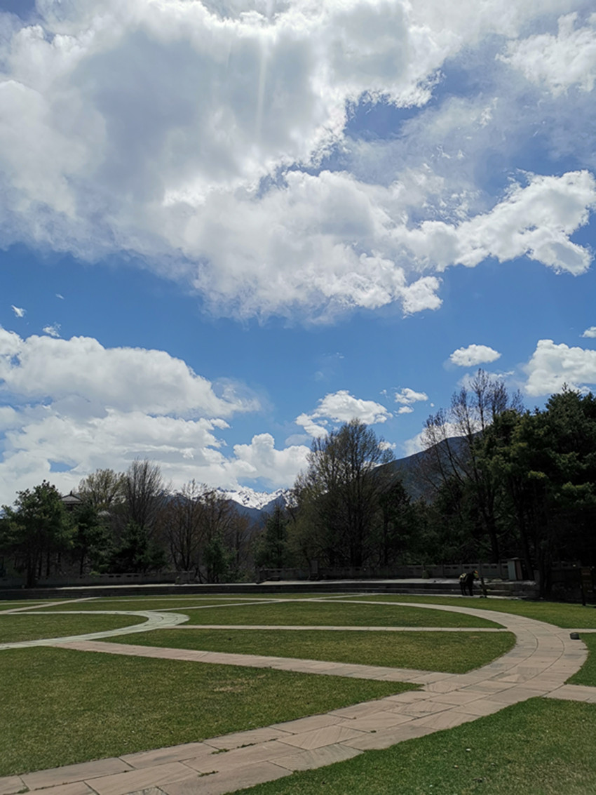 回到家后,我隔窗再望獅子巖,那濃蔭綠樹已遮得嚴(yán)嚴(yán)實實,根本看不到獅子巖的影子,倒是濃蔭中,隨風(fēng)飄動的彩色經(jīng)幡時隱時現(xiàn)。