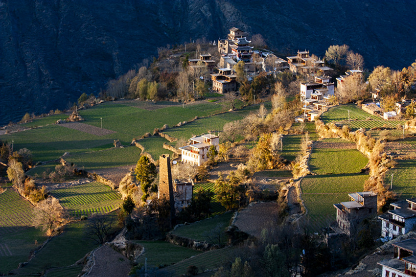 丹巴,無論在深山峽溝,還是在田間林園,藏房路口隨處可見高大的古碉以及殘?jiān)珨鄩Φ牡镏愤z跡,這一切蘊(yùn)含著多么大的勞動(dòng)量。殘酷的年代,先民們赤腳背石,手抓繩索,一石一泥,一檁一椽,日復(fù)一日,年復(fù)一年,一點(diǎn)點(diǎn)背上去,一寸寸砌起來。這樣可敬的古碉,它的每一個(gè)角、每一塊石頭、每一鏟泥巴,都是先民們用汗水所鑄,同時(shí)也寫下了藏民建筑史上光輝的歷史。