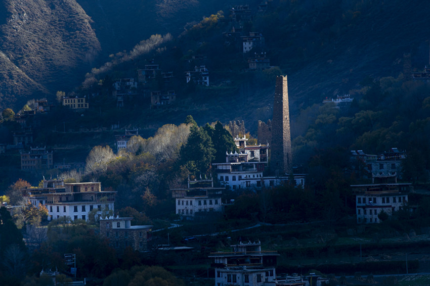 如果說衣著艷麗、高挑健美、輪廓分明、深情嫵媚的丹巴美女,實(shí)現(xiàn)了所有女孩子心中的浪漫的公主夢(mèng),少女心,是丹巴浪漫唯美氣息代表的話。那么筆直挺拔、棱角分明、飽經(jīng)風(fēng)雨、巍然屹立的碉樓,則是丹巴陽(yáng)剛之美的代表。