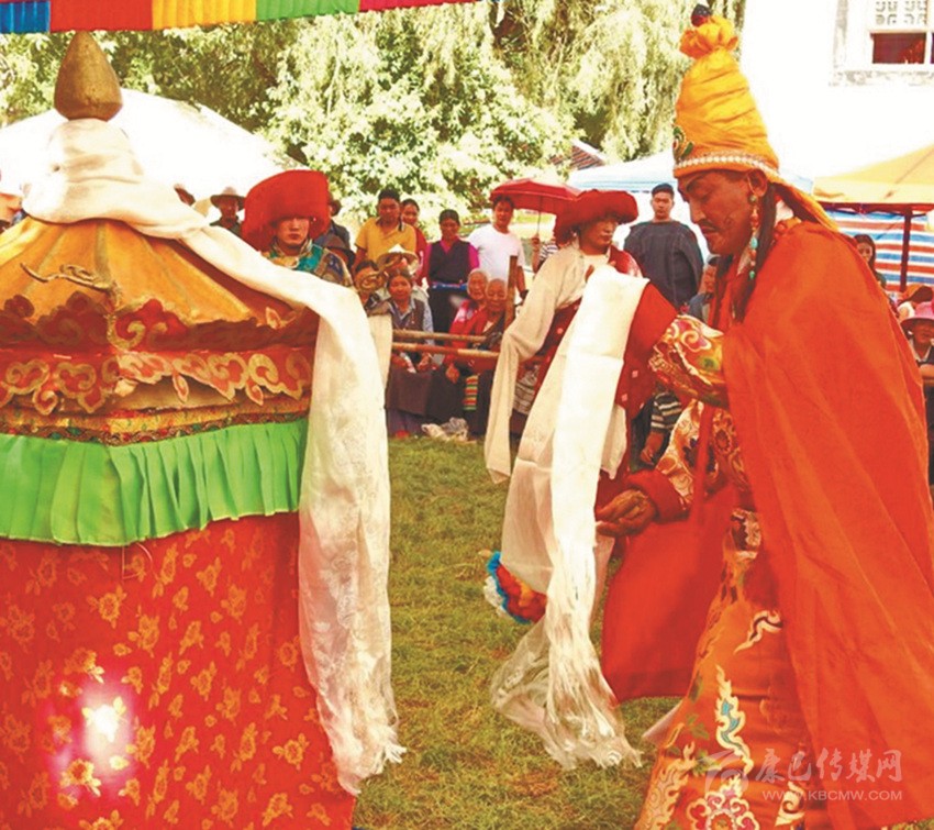 在康巴衛(wèi)視藏歷春晚節(jié)目中,我初次看到巴塘藏戲,原以為是寺廟舞蹈,卻在唱聲里聽出類似川劇的喉腔讓我覺得新奇,于是找些資料看看了巴塘藏戲介紹。藏戲的開山鼻祖唐東杰布。藏民歷來(lái)把他看作是創(chuàng)造藏戲的戲神和修建橋梁的鐵木工匠的“祖師”,是藏族人民心目中智慧、力量的化身。他將佛教經(jīng)典中的傳記同民間傳說(shuō)、神話故事等內(nèi)容融在一起,創(chuàng)作出一種具有人物性格和舞蹈、唱腔相結(jié)合的表演藝術(shù),使過(guò)去那種單一的跳神舞逐漸地戲劇化,表現(xiàn)手段也不斷加強(qiáng),并從宗教儀式中分離出來(lái),形成了藏劇藝術(shù)的雛形。