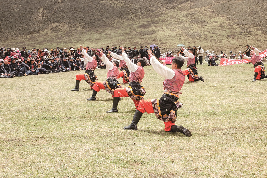 這個演出隊匯集了當(dāng)時縣上最優(yōu)秀的踢踏舞者,在那里我認識了陳幫文、洛呷、伍伯康、貢布、絨波、俄洛啟加等,那真是一批踢踏舞的精英,每當(dāng)音樂響起,你就看他們那翻飛的腳步如流動的浪花,酣暢淋漓,激情四射。