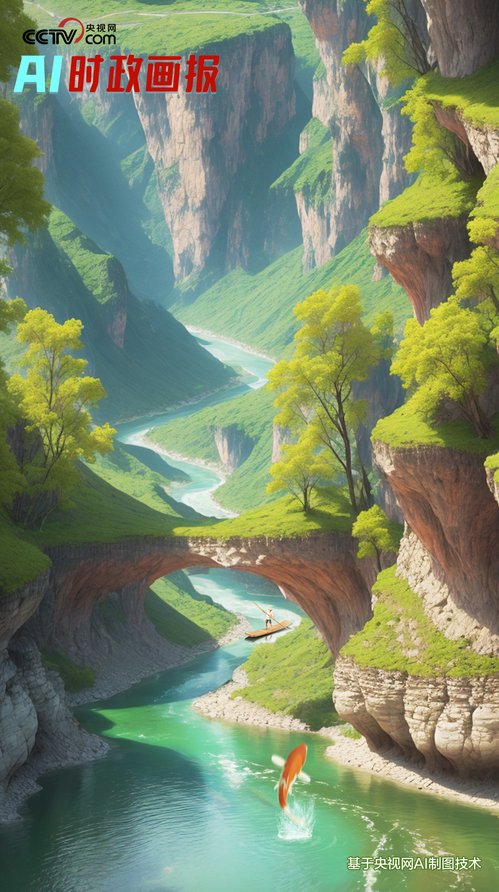 習(xí)近平和大家一起乘坐竹排,行進(jìn)溪上。行到中游,一條紅鯉魚從水中躍上竹排,不偏不倚,正好落在習(xí)近平腳邊。