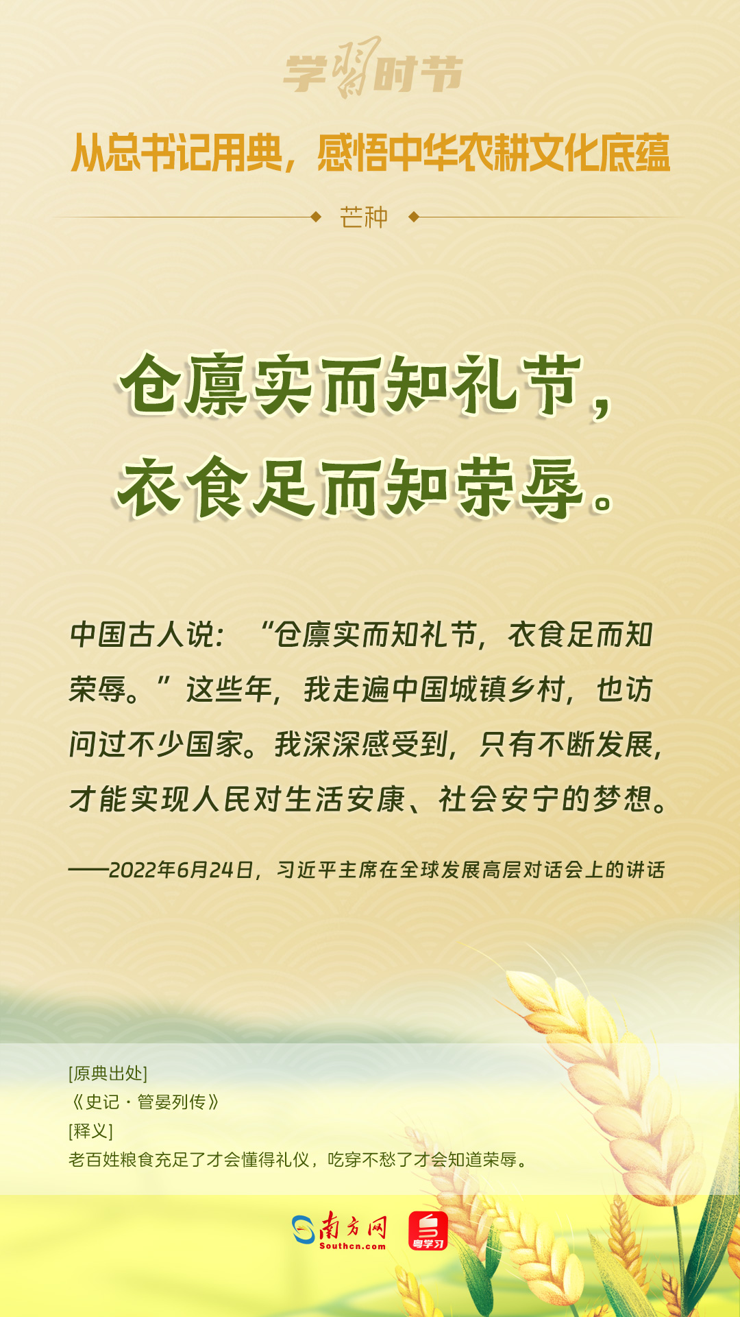 6月5日迎來芒種節(jié)氣,讓我們一起重溫習(xí)近平總書記引用過的關(guān)于農(nóng)耕的經(jīng)典名句,共同領(lǐng)略中華優(yōu)秀傳統(tǒng)文化的風(fēng)采與魅力。