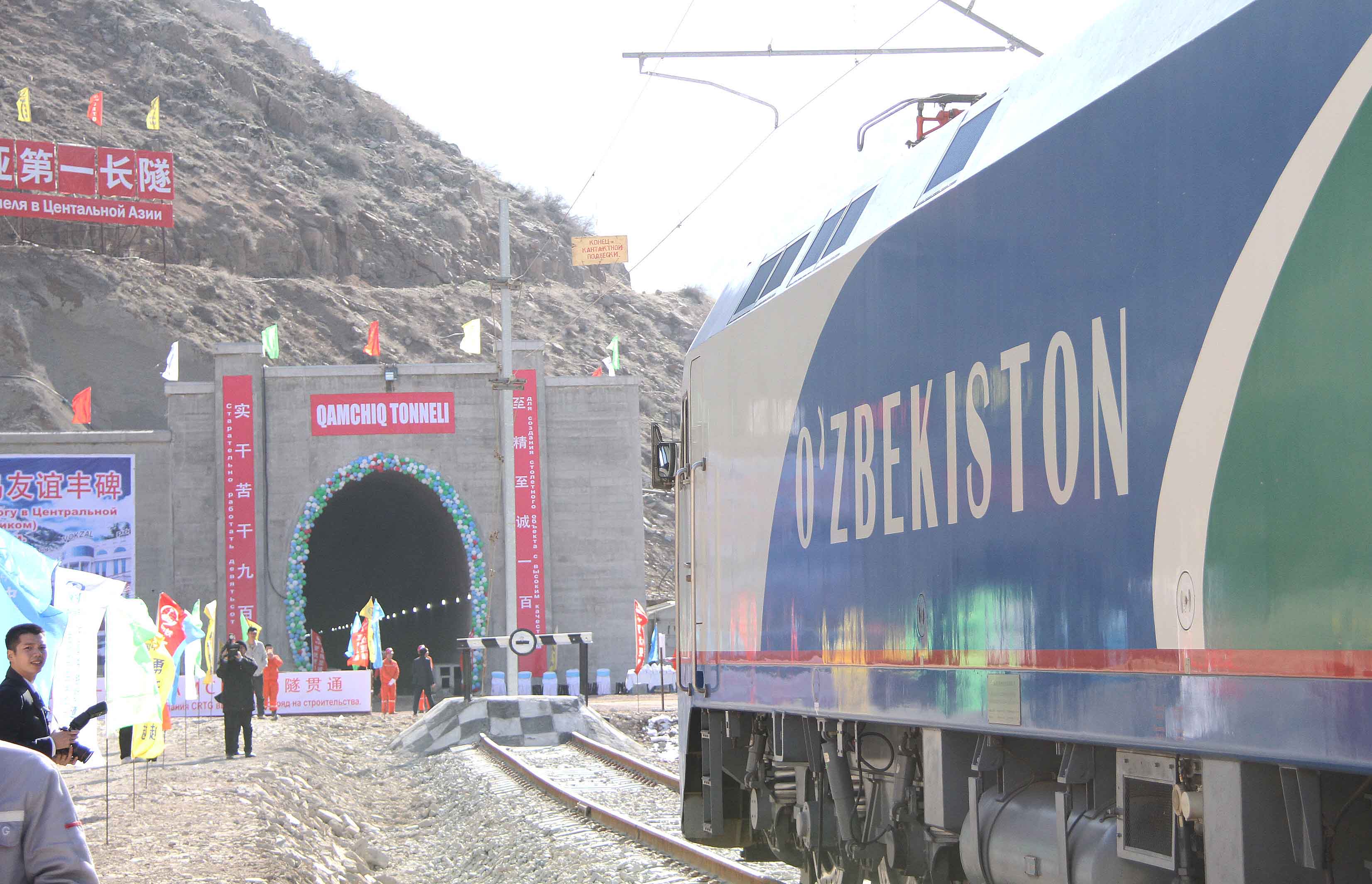 △ 2016年2月27日,一列專列停在烏茲別克斯坦安格連至琶布鐵路甘姆奇克隧道進口。甘姆奇克隧道是中吉烏鐵路的重要一環(huán),對促進烏茲別克斯坦經濟社會發(fā)展和共建“一帶一路”倡議的實施具有重大意義。