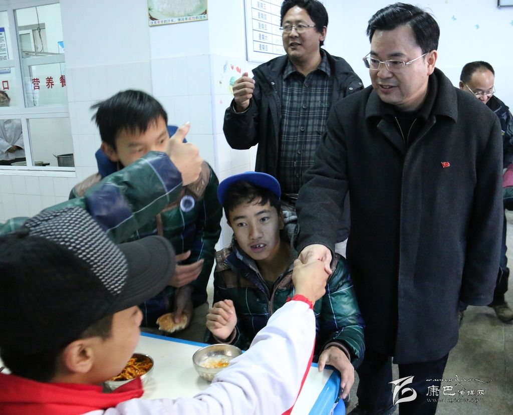 來到州特殊教育學校,學校校長澤仁郎吉告訴胡昌升,“地震來臨時,學校教師按照過去的地震應(yīng)急演練,組織全校80多名學生有序撤離,無一人受傷。地震發(fā)生后,家長到學??吹胶⒆佣己馨踩浅7判?rdquo;。胡昌升對該校在關(guān)鍵時刻及時有序疏散學生的做法給予了充分肯定。走進學校食堂,全校學生正在吃早飯,見到胡昌升一行,所有孩子都伸出手指,用手語向大家表示感謝。胡昌升對周圍的州教育局負責同志和學校老師說,學校要嚴密防控余震帶來的次生災(zāi)害,確保大家安全。