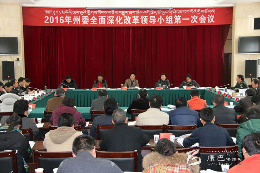 本網(wǎng)訊(記者 陳斌 文/圖)2月23日下午,州委全面深化改革領(lǐng)導(dǎo)小組召開今年第一次工作會議,傳達學(xué)習(xí)中央全面深化改革領(lǐng)導(dǎo)小組第19次、第20次會議精神和省委全面深化改革領(lǐng)導(dǎo)小組第9次會議精神;聽取各專項小組關(guān)于2015年改革工作推進情況和2016年改革工作安排情況匯報;審議通過《中共甘孜州委全面深化改革領(lǐng)導(dǎo)小組2016年工作要點》《甘孜州黨風廉政建設(shè)“一案雙查”辦法》《甘孜州進一步深化司法體制和社會體制改革實施方案》。