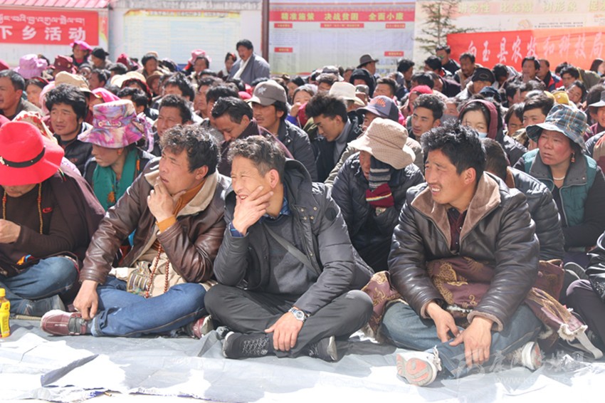宣講中,宣講員們一會兒用藏語一會兒用漢語,一會兒講故事一會兒舉例子,一會兒逗趣說笑一會兒拍案而起,將省、州、縣的方針政策和國家法律、法規(guī)與當?shù)厝罕姷膶嶋H生活聯(lián)系起來,講得生動形象;“現(xiàn)在政策這么好,自己不努力,以后人家都脫貧了你就只有看到?!薄扒谙词?,勤洗澡,健康生活少不了?!薄耙粋€人長得再漂亮,住的房子不干凈,穿的衣服不干凈,還有一身壞習慣,也沒得哪個喜歡她嘛?!薄瓬\顯通俗又包含道理的句子更是層出不窮。現(xiàn)場時而笑聲朗朗、掌聲雷動,時而氣氛肅穆、鴉雀無聲。臺上,講的是激情四射、手舞足蹈;臺下,聽的是忘乎所以、目瞪口呆。長達3個小時的宣講,現(xiàn)場秩序井然。