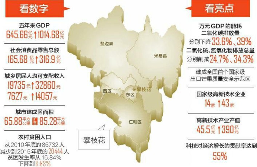 2013年,攀西戰(zhàn)略資源創(chuàng)新開發(fā)試驗區(qū)設立,兩地大面積進入試驗區(qū);根據(jù)我省去年編制出臺的五大經(jīng)濟區(qū)“十三五”發(fā)展規(guī)劃,攀西經(jīng)濟區(qū)包括攀枝花市和涼山州2市(州)、22個縣(區(qū)),涉及經(jīng)濟總量2240億元。