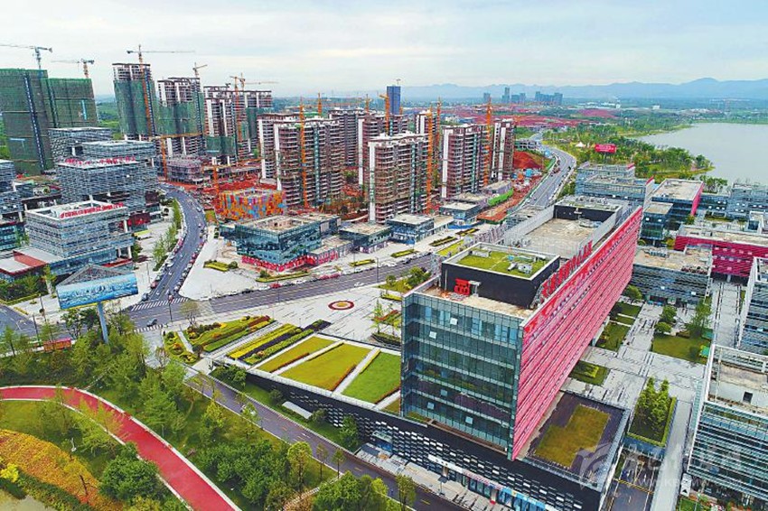 5月3日,“喜迎黨代會 天府新飛躍”全國主流新媒體瞰四川大型采訪活動首站走進成都市。圖為航拍的天府新區(qū)成都直管區(qū)的成都科學城。 姜曦 攝