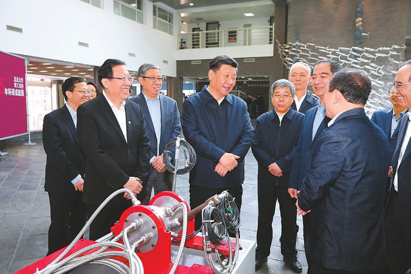 近年來,北京大學培養(yǎng)和匯聚了一批具有世界領先水平的科學家、科技領軍人才和創(chuàng)新團隊,科研綜合實力、原始創(chuàng)新能力顯著增強。在金光生命科學大樓一層大廳,展示了近年來北京大學在理科、工科、醫(yī)科等領域的科研成果。習近平認真聽取關于學校學科建設、人才隊伍建設、科研創(chuàng)新能力提升等情況介紹,并仔細察看新一代干細胞技術、碳芯片技術、微型雙光子顯微成像系統(tǒng)等科研裝置和實物模型。習近平對大家說,看了你們的成果展示,我為你們感到驕傲。創(chuàng)新是引領發(fā)展的第一動力,是國家綜合國力和核心競爭力的最關鍵因素。重大科技創(chuàng)新成果是國之重器、國之利器,必須牢牢掌握在自己手上,必須依靠自力更生、自主創(chuàng)新。在這個問題上,我們一定要保持清醒。要繼續(xù)深化科技體制改革,把人、財、物更多向科技創(chuàng)新一線傾斜,努力在關鍵共性技術、前沿引領技術、現代工程技術、顛覆性技術創(chuàng)新上取得更大突破,搶占科技創(chuàng)新制高點。高校是科技創(chuàng)新體系的重要組成部分,高??蒲腥藛T是我國科技創(chuàng)新的重要隊伍。要加強學科之間的協(xié)同創(chuàng)新,加強對交叉學科群和科技攻關團隊的支持,培養(yǎng)造就更多具有國際水平的科技人才和創(chuàng)新團隊。