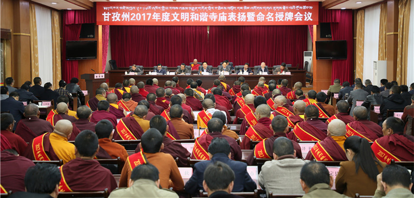 本網(wǎng)訊 近日,州委、州政府召開會(huì)議為2017年度文明和諧寺廟命名授牌,并表揚(yáng)愛國守法模范僧尼。州委書記劉成鳴出席會(huì)議并講話。他希望,廣大僧尼對(duì)標(biāo)“政治合格、愛國愛教、遵規(guī)守法、持戒精修、團(tuán)結(jié)進(jìn)步、利益眾生”六個(gè)標(biāo)準(zhǔn)做好表率,教育引導(dǎo)廣大僧尼和信教群眾“感黨恩、愛祖國、守法制、奔小康”,積極推動(dòng)宗教界與全州脫貧奔康和長治久安進(jìn)程相協(xié)調(diào)、與社會(huì)主義社會(huì)相適應(yīng)。州委副書記、州長肖友才主持會(huì)議。州人大常委會(huì)主任李康、州政協(xié)主席向秋出席。