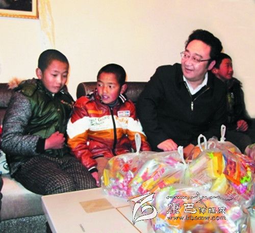 聽說“益西爸爸”又要來看望他們時,兄弟倆早早便等候在自己的寢室里。益西達瓦快步走進宿舍,來到孩子們面前,握著他們的小手,撫摸著他們可愛的小臉蛋,關切地詢問孩子們的生活、學習情況。“要過年了,爸爸來看望你們,高興不高興?”益西達瓦拉著澤仁多吉的小手問,澤仁多吉羞澀地點點頭,“你這個娃娃就是性格內向了點,你要多說話,性格開朗點,做個陽光小子嘛。爸爸這次來給你們買了些好吃的糖果糕點,你和哥哥沒事的時候可以解解饞,記住還要分給同寢室的小伙伴們哦。你們一個寢室的8個人都是兄弟,兄弟之間要學會分享。”