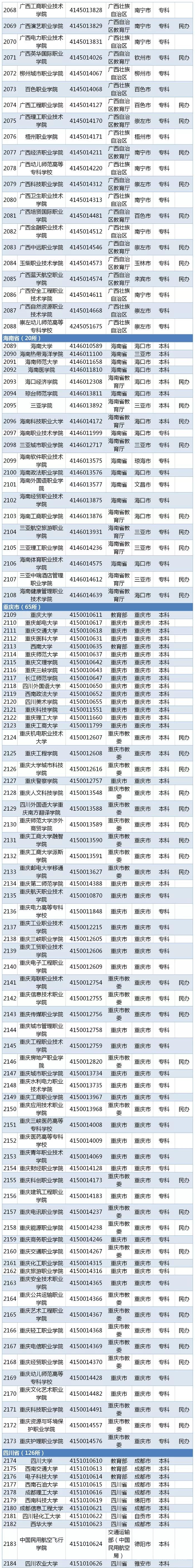 教育部最新發(fā)布2019全國(guó)高校名單