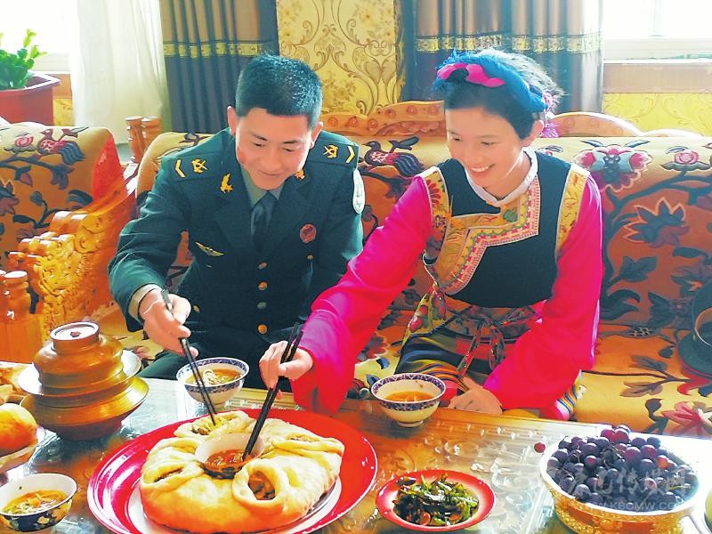 在中國(guó)文化中,吃面自古以來就有福壽延綿的美好寓意。圖為10月2日,駐甘孜巴塘官兵與夏邛鎮(zhèn)群眾同吃巴塘冒面,為祖國(guó)慶生,祝愿祖國(guó)繁榮昌盛、國(guó)泰民安。 華西都市報(bào)-封面新聞?dòng)浾?田雪皎 攝