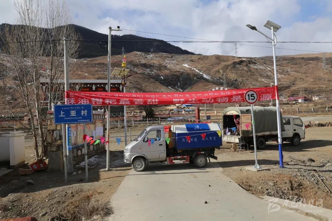 “不準進哈,離我遠點?!?月13日,記者來到道孚縣格西鄉(xiāng)上亞村口,一個垃圾車橫著堵住進村道路,一幅“酥油糌粑最香甜,野生動物是病源”的橫幅醒目地牽一根電桿和路燈柱上,一個中年藏族婦女遠遠地打著招呼。