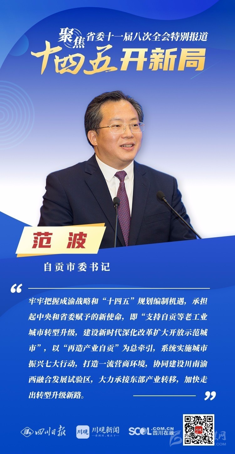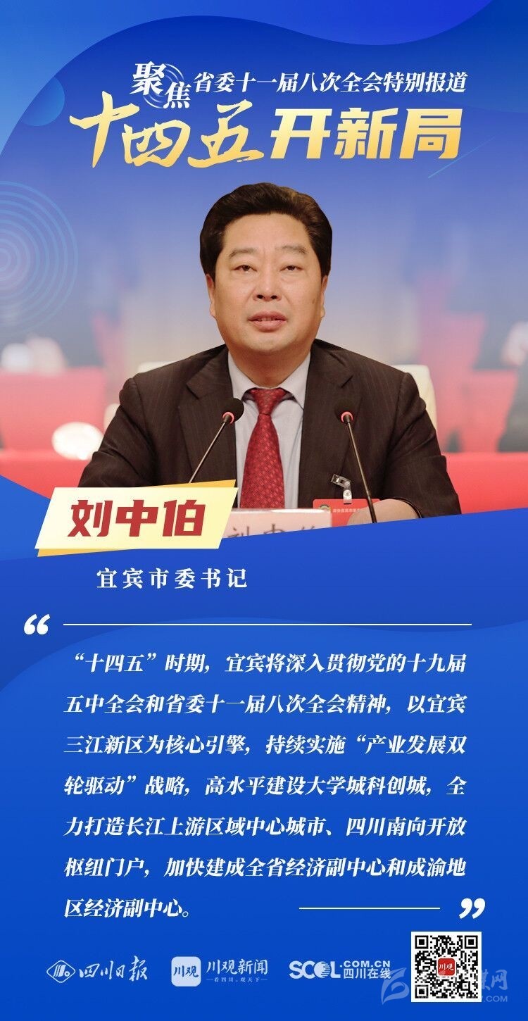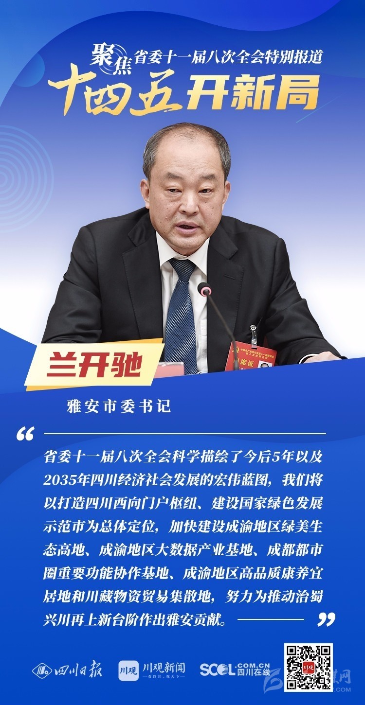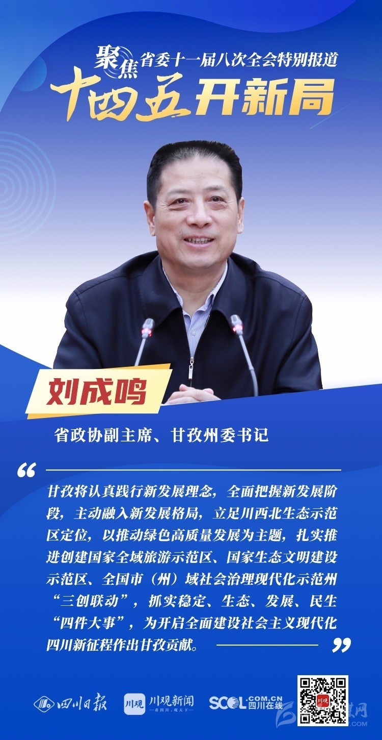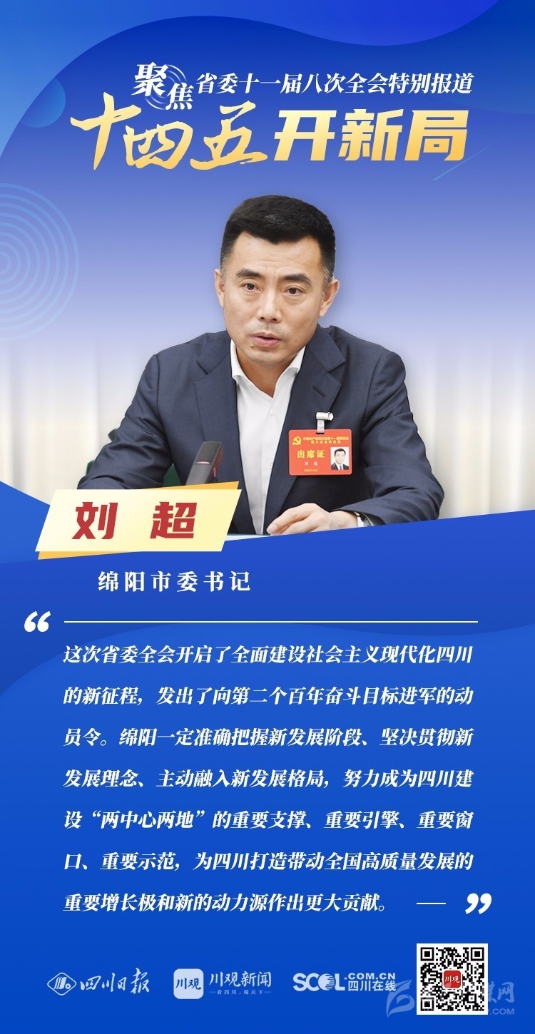 12月3日,中共四川省委十一屆八次全會在成都開幕,全會將深入學習貫徹黨的十九屆五中全會精神,審議《中共四川省委關于制定四川省國民經(jīng)濟和社會發(fā)展第十四個五年規(guī)劃和二〇三五年遠景目標的建議(討論稿)》,為未來5年乃至更長時期四川發(fā)展謀劃新藍圖 。