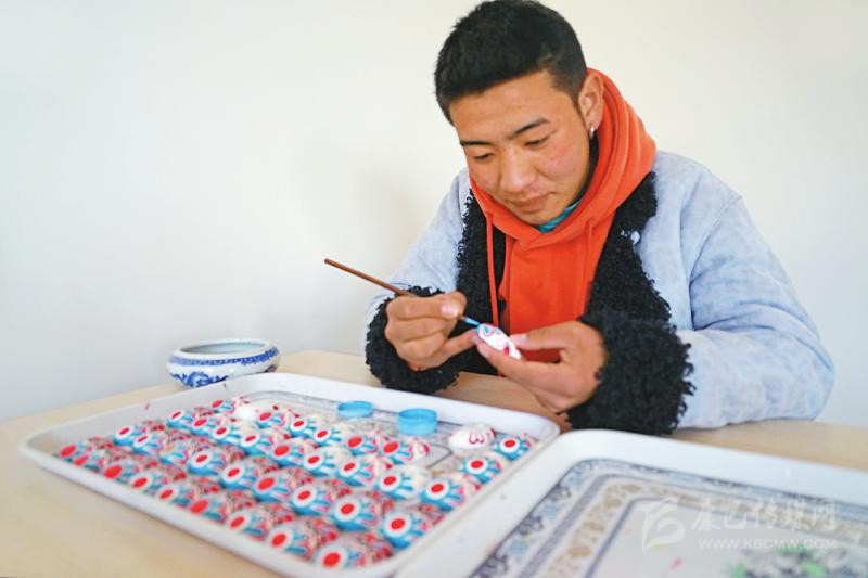 本著自主自愿的原則,教學(xué)班結(jié)束后,65名藏族青年主動(dòng)加入扶貧彩繪實(shí)訓(xùn)班,成為項(xiàng)目的第一批學(xué)員?!皩?shí)訓(xùn)期間不需要交任何費(fèi)用,還包吃住。我對(duì)畫(huà)京劇臉譜很有興趣,我們第一個(gè)月學(xué)習(xí)繪畫(huà)基本功,第二個(gè)月開(kāi)始,根據(jù)成品質(zhì)量,就可以計(jì)件得酬勞,學(xué)習(xí)期間我每月能掙500多元。”邛批說(shuō)。