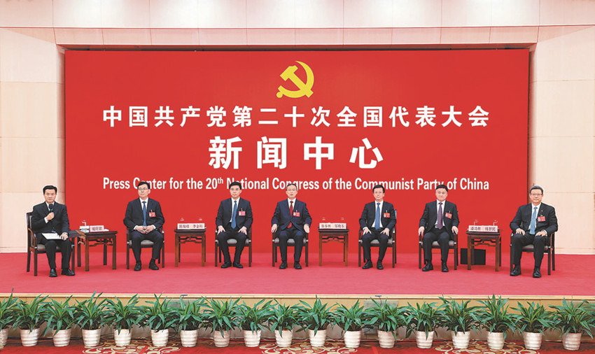 10月20日,中國共產(chǎn)黨第二十次全國代表大會(huì)新聞中心舉行集體采訪。 新華社 發(fā)
