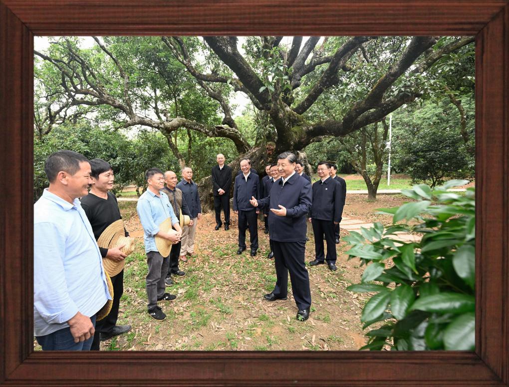 12月31日晚,國家主席習近平發(fā)表二〇二四年新年賀詞。 推近、定格、銘記,透過總書記身后書架上的一張張照片,我們記住過去,也對未來充滿信心。 不變的情懷 幾張老照片,在書架上擺放多年,人們已經(jīng)非常熟悉。 習近平同志青年時期的軍裝照,連續(xù)第3年出現(xiàn),擺放在書架醒目位置。 這令人不由得想起10年前的一段暖心對話—— 2013年11月,湖南十八洞村,村民石拔三老人見到了來此考察的習近平總書記。 “怎么稱呼您?”“我是人民的勤務(wù)員?!?/p> 歲月流轉(zhuǎn),初心不改。從照片上的青年,到人民的勤務(wù)員,“我將無我,不負人民”的赤子情懷始終如一。 家庭是個人溫馨的港灣。習近平同志一家三口和父親習仲勛在一起、習近平同志在福州時帶女兒玩的照片,自總書記第一次發(fā)表新年賀詞以來,就一直擺在書架上。 2023年,又有幾張新的總書記家庭照片映入眼簾。 一張是習仲勛同志的單人照。 2023年是習仲勛同志誕辰110周年。習近平總書記從小深受父親影響,形容父親“像一頭老黃牛,為中國人民默默地耕耘著”,“這也激勵著我將自己的畢生精力投入到為人民群眾服務(wù)的事業(yè)中,報效養(yǎng)育我的錦繡中華和父老鄉(xiāng)親”。 同夫人彭麗媛在深圳錦繡中華景區(qū)的留影、習近平夫婦懷抱女兒的合影,也是第一次出現(xiàn)在書架上。 天下之本在家。習近平總書記指出,家庭和睦則社會安定,家庭幸福則社會祥和,家庭文明則社會文明。 修身、齊家,家好、國更好。習近平總書記率先垂范,對家人的責任、對家風的傳承、對家教的認真令人動容。 不停的步履 11張2023年拍攝的照片,留下習近平總書記過去一年治國理政的經(jīng)典瞬間。 2023年,習近平總書記共進行了16次國內(nèi)考察,出訪4次,在國內(nèi)數(shù)十次會晤到訪的各國各界人士。 將鏡頭拉遠,總書記的身影不辭萬里—— 向南,習近平總書記來到位于我國大陸最南端的廣東省湛江市徐聞縣;向北,考察中國最北端的黑龍江省漠河市北極村;向西,視頻連線守衛(wèi)祖國西大門的新疆軍區(qū)紅其拉甫邊防連執(zhí)勤哨所。 這張同紅其拉甫邊防連執(zhí)勤哨所等進行視頻通話的拼版照片,正是書架上的新照片之一。 “黃河九曲、長江奔流,總讓人心潮澎湃、豪情滿懷?!?023年,長江流經(jīng)的11個省市里,習近平總書記考察了4個;黃河沿線的9個省區(qū)里,考察了5個;大運河涉及的8個省市里,考察了5個。 北瀕長江、南臨廬山、東枕鄱湖,江西九江的中國石化九江分公司位置特殊。10月,習近平總書記來到這里時,員工們圍攏過來紛紛向總書記問好。 總書記親切地說,希望你們按照黨中央對新型工業(yè)化的部署要求,堅持綠色、智能方向,扎扎實實、奮發(fā)進取,為保障國家能源安全、推動石化工業(yè)高質(zhì)量發(fā)展作出新貢獻。 “追求卓越 勇創(chuàng)一流”——墻上的標語仿佛大家的回應。這一幕,也被相機定格。 將鏡頭推近,總書記的關(guān)切無微不至—— 這是對生產(chǎn)的關(guān)心。 萬畝甘蔗林中,習近平總書記同身著民族服裝的蔗農(nóng)走在一起,大家的笑容像甘蔗一樣甜??倳洝盀楸U蠂姨菢I(yè)安全、促進蔗農(nóng)增收致富發(fā)揮更大作用”的叮嚀深入人心。 古老荔枝樹下,總書記同現(xiàn)場技術(shù)人員親切交流,指出要著力做好“土特產(chǎn)”文章,以產(chǎn)業(yè)振興促進鄉(xiāng)村全面振興。 這是對企業(yè)的關(guān)注。 9月,習近平總書記來到浙江義烏國際商貿(mào)城考察,人們紛紛從商鋪中走出來,掌聲、問候聲、歡呼聲此起彼伏。 面對商戶、小企業(yè)主們,總書記點贊道:“義烏小商品闖出了大市場、做成了大產(chǎn)業(yè),走到這一步很了不起,每個人都是參與者、建設(shè)者、貢獻者?!?/p> 這是對人民的關(guān)懷。 2023年,華北、黃淮等地出現(xiàn)極端降雨,引發(fā)洪澇和地質(zhì)災害。 北方入冬之際,習近平總書記來到北京、河北受災較重的相關(guān)地區(qū),看望慰問受災群眾。書架上這張照片,便是總書記在北京門頭溝妙峰山鎮(zhèn)水峪嘴村考察時留下的。 一度被洪水淹沒的水峪嘴村已經(jīng)修葺一新,村民家中窗明幾凈、暖氣充足。 少年兒童的成長,習近平總書記一直牽掛在心,書架上多次出現(xiàn)總書記同孩子們在一起的場景。 2023年精選的,是一張習近平總書記在北京育英學校的照片。 看到孩子們正在學生農(nóng)場勞動,總書記關(guān)心地說:“希望同學們從‘學農(nóng)’中感受到農(nóng)作的艱辛和農(nóng)民的不易,從小養(yǎng)成熱愛勞動、珍愛糧食、尊重自然的良好習慣,為建設(shè)美麗中國作貢獻。” 不竭的力量 國徽高懸,熠熠生輝。這是一個歷史性的瞬間。 2023年3月10日,北京人民大會堂。全票當選國家主席、中央軍委主席的習近平,左手撫按《中華人民共和國憲法》,右手舉拳,面向近3000名全國人大代表,鄭重宣誓。 錚錚誓言,響徹人民大會堂,回蕩在960萬平方公里土地上,回蕩在億萬中華兒女心中。 重溫激動人心的一刻,我們信心十足、精神百倍。 信心,來自堅強的領(lǐng)導核心—— 書架上,擺放著習近平總書記在內(nèi)蒙古自治區(qū)巴彥淖爾市臨河區(qū)國營新華林場考察時的一張照片。 走進正在治理的沙地,總書記感慨:“ 像‘三北’防護林體系建設(shè)這樣的重大生態(tài)工程,只