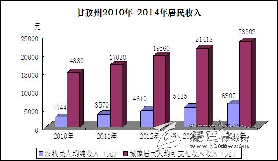 城鄉(xiāng)居民收入持續(xù)較快增長。2014年,城鎮(zhèn)居民人均可支配收入23303元,增長8.8%;人均生活消費(fèi)性支出16127元,增長8.1%;城鎮(zhèn)居民恩格爾系數(shù)為42.4%,同比下降0.4個百分點(diǎn)。農(nóng)牧民人均純收入6307元,增長16 %。全年生活消費(fèi)支出人平達(dá)4515元,增長17.2%;農(nóng)村居民恩格爾系數(shù)為58.9%;較上年下降1.5個百分點(diǎn)。