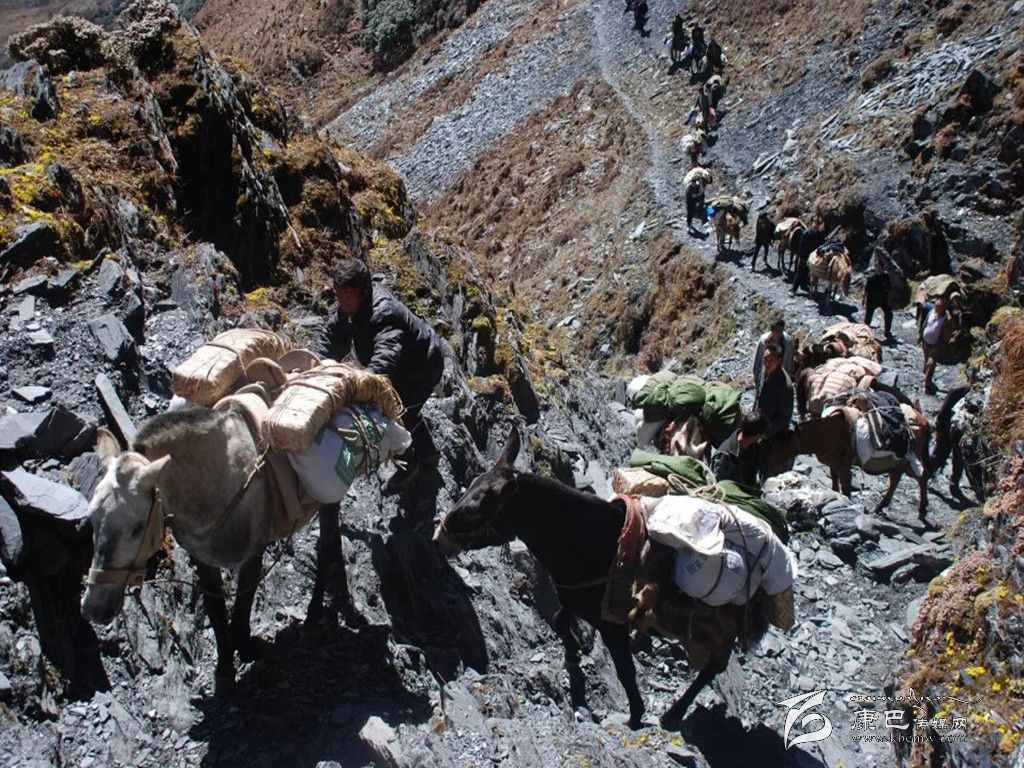 工作組在山道上運(yùn)送物資︒