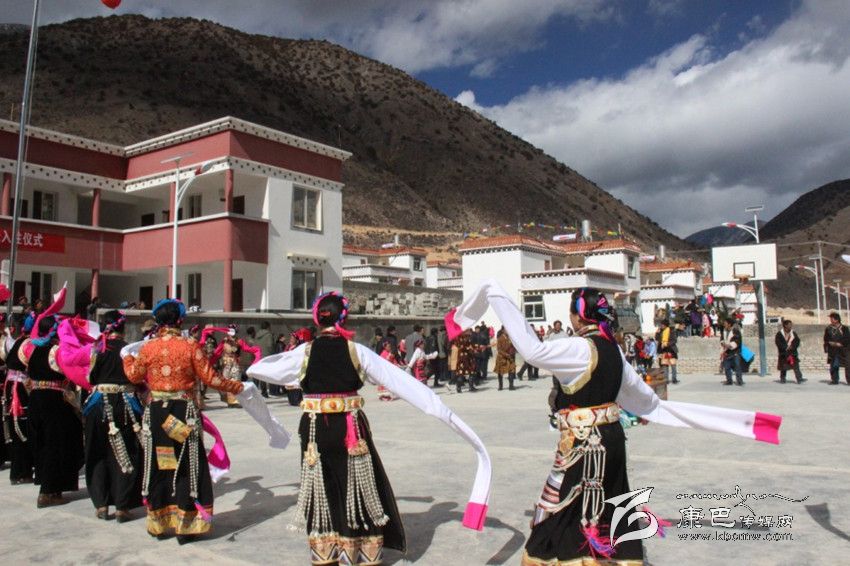 絨貢村距離茨巫鄉(xiāng)政府16公里,地處高山地帶,是得榮縣典型的高山邊遠(yuǎn)貧困村,農(nóng)牧民居住條件艱苦,交通不便,農(nóng)作物只生一季。2010年,為改善藏區(qū)群眾生產(chǎn)生活條件,省委、省政府實施牧民定居計劃,經(jīng)過多次調(diào)研后,平均海拔2800米,地勢平坦的卡色壩被確定為得榮縣生態(tài)移民開發(fā)安置點之一。作為推進富民安康的一項重大民生工程,卡色壩移民新村建設(shè)既結(jié)合了牧民生活習(xí)慣又融入了現(xiàn)代居住理念,建筑風(fēng)格統(tǒng)一的藏式房屋內(nèi)設(shè)有衛(wèi)生間、洗浴室、并配套太陽能熱水器,經(jīng)過6年的建設(shè),在今日迎來了正式喬遷入住。