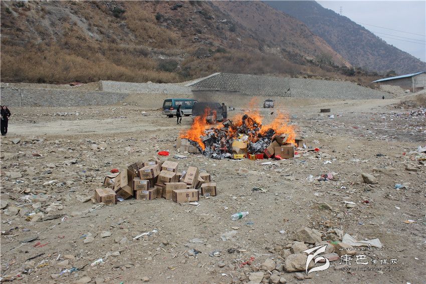 本網(wǎng)訊(謝靜 尼胡克布文/圖)3月15日,瀘定縣食品藥品工商質(zhì)量監(jiān)督管理局聯(lián)合司法局、發(fā)改局、農(nóng)牧局等相關(guān)部門以及煙草、桑吉卓瑪、瀘灃超市、電信等企業(yè),以“3.15”活動(dòng)為契機(jī),深入開展“新消費(fèi),我做主”年主題宣傳活動(dòng),現(xiàn)場(chǎng)接待了各類咨詢150余人(次),發(fā)放各種宣傳材料2000余份。宣傳活動(dòng)結(jié)束后,縣食品藥品工商質(zhì)量監(jiān)督管理局將近期收繳的價(jià)值9.1余萬元的不合格食品、侵犯商標(biāo)的商品,運(yùn)送到垃圾場(chǎng)進(jìn)行了焚毀。圖為焚燒現(xiàn)場(chǎng)?! ?br />