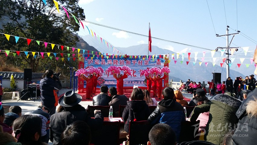 鼓聲喧天、歌聲飛揚,現場到處洋溢著濃濃的節(jié)日氛圍。浩浩蕩蕩的隊伍也引來了不少村民和游客們的關注。特別是隊伍中幾個唱山歌的村民獨特的腔調和唱詞盡展和平村山歌的特色。和平村每到冬月以后,村民家家戶戶便開始殺年豬,相互串門,吃年豬宴,這一習俗已傳承百年,在和平村村民的心中,年豬文化節(jié)是一個慶祝豐收的節(jié)日。上午十點半,游行隊伍來到了和平村村級活動室,“豬王”被放在了舞臺中間,焚香祈福后,當地村民用載歌載舞的方式共慶這一節(jié)日的成功舉辦。村民們自編自演的舞蹈《祖國您好》《喜慶臨門》《紅梅贊》,現場表演唱山歌打草鞋,每一支舞,每一首歌都傳遞著村民們對黨對祖國對新生活的無限熱愛。