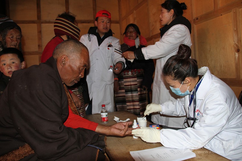 本網(wǎng)訊(葉強(qiáng)平)4月11日,理塘縣衛(wèi)計(jì)局組織19名醫(yī)務(wù)人員,深入離縣城60多公里、海拔4200多米的村戈鄉(xiāng)拖仁村,為90多名牧民群眾進(jìn)行了體重、血壓、B超、心電圖、婦女病篩查等健康檢查,還為群眾建立了健康檔案。圖為醫(yī)務(wù)人員在為牧民群眾測血糖。