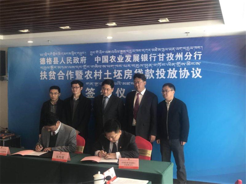 本網(wǎng)訊(德格縣委中心報(bào)道組) 4月28日,德格縣人民政府與中國(guó)農(nóng)業(yè)發(fā)展銀行甘孜州分行扶貧合作暨農(nóng)村土坯房貸款投放協(xié)議簽約儀式在康定舉行。