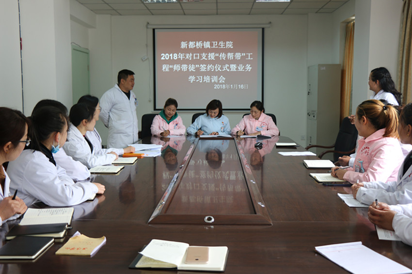春風(fēng)沐浴、雨露滋潤;德隆情盛、高屋建瓴。為進(jìn)一步提升康定地區(qū)基層醫(yī)療衛(wèi)生機(jī)構(gòu)服務(wù)能力,打造一支有擔(dān)當(dāng)、有能力、可支撐的本土醫(yī)療衛(wèi)生人才隊(duì)伍。在對(duì)口幫扶工作中,康定市衛(wèi)計(jì)局高度重視本土人才培養(yǎng),將“傳幫帶”工作作為了重點(diǎn)。2018年1月8日,康定市疾控中心與都江堰市疾控中心通過座談商榷了“傳幫帶”幫扶方案,達(dá)成了共識(shí),下一步將通過對(duì)口幫扶,互訪交流、業(yè)務(wù)培訓(xùn),信息溝通共享等方式,在綜合管理、等級(jí)評(píng)審、人員能力建設(shè)、實(shí)驗(yàn)室檢驗(yàn)檢測(cè)能力建設(shè)、應(yīng)急處置能力建設(shè)等方面進(jìn)行重點(diǎn)“傳幫帶”。與此同時(shí),康定市第二人民醫(yī)院舉辦了對(duì)口支援“傳幫帶”工程“師帶徒”簽約儀式暨工作推進(jìn)會(huì)議。會(huì)上各位專家與選中的學(xué)員進(jìn)行現(xiàn)場簽約,雙方約定在今后的一年中,專家們通過理論培訓(xùn)、教學(xué)手術(shù)(操作)、教學(xué)查房、疑難病例討論、常見病多發(fā)病診治、開展新技術(shù)新業(yè)務(wù)等方面進(jìn)行指導(dǎo)、幫扶、協(xié)作,明確了各自的目標(biāo)任務(wù)和工作職責(zé)。