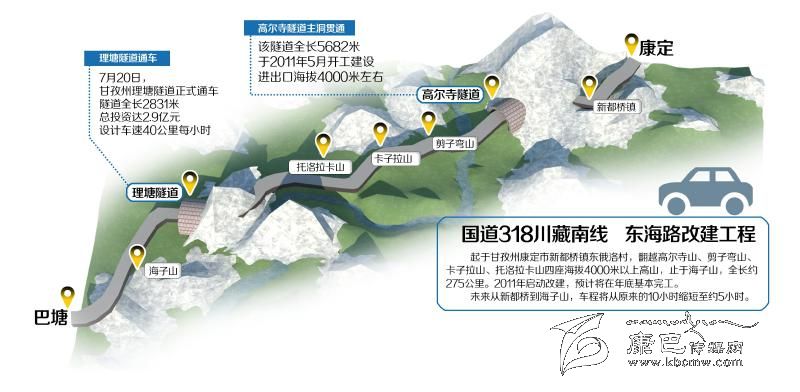 國(guó)道318川藏南線是四川進(jìn)藏大通道之一,也是甘孜藏族自治州境內(nèi)極其重要的交通主干道之一。2011年啟動(dòng)建設(shè)的東海路改建工程,按三級(jí)公路標(biāo)準(zhǔn)改建,起于甘孜州康定市新都橋鎮(zhèn)東俄洛村,翻越高爾寺山、剪子彎山、卡子拉山、托洛拉卡山四座海拔4000米以上高山,止于海子山,全長(zhǎng)約275公里。