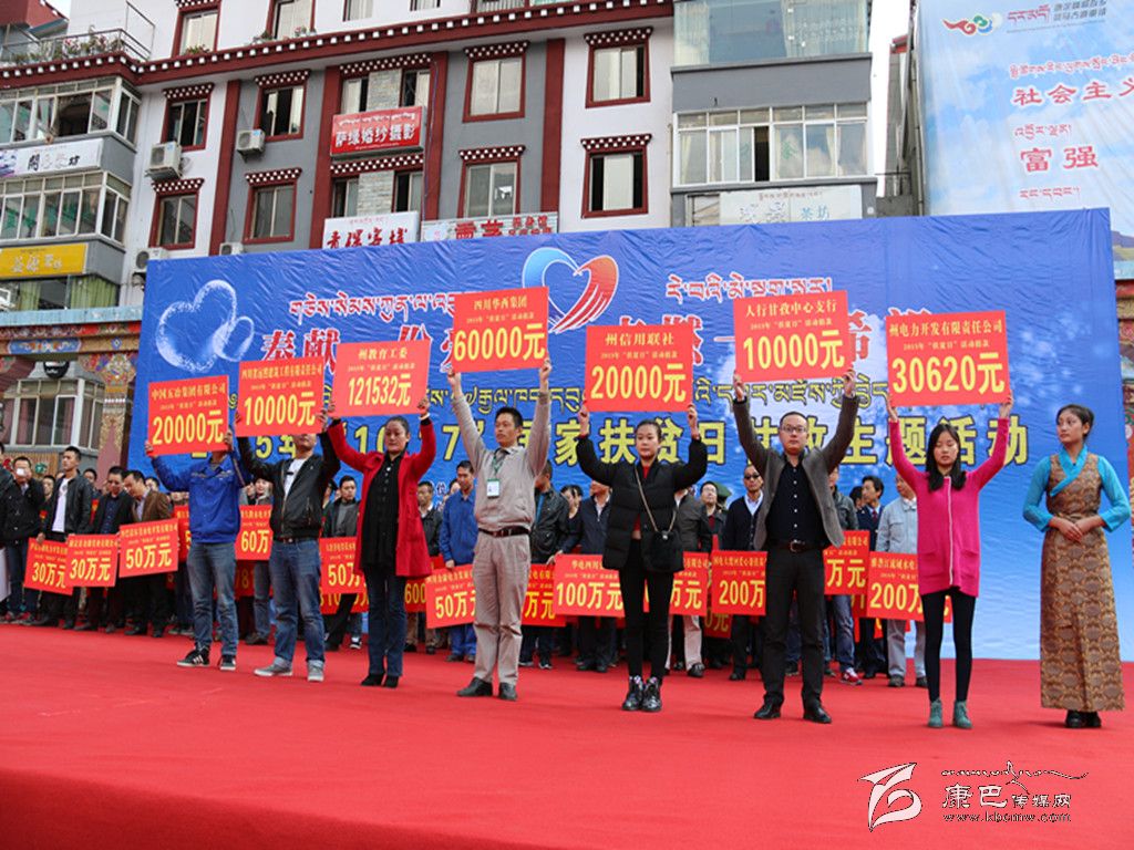 隨后,杜德清宣布2015年全國(guó)扶貧日甘孜主題活動(dòng)開幕,捐款舉牌儀式正式開始。
