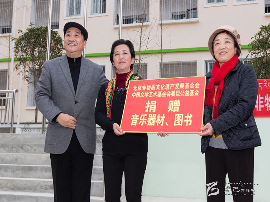 日前,全國政協(xié)委員、北京非物質(zhì)文化遺產(chǎn)發(fā)展基金會(huì)形象大使、中國文學(xué)藝術(shù)基金會(huì)副理事長(zhǎng)、中國文藝志愿者協(xié)會(huì)主席姜昆(左)和北京非物質(zhì)文化遺產(chǎn)發(fā)展基金會(huì)第一副理事長(zhǎng)史秋秋(右),率團(tuán)來我州援助學(xué)校音樂器材和圖書。圖為瀘定縣貢嘎山小學(xué)李英校長(zhǎng)(中)代表我州受贈(zèng)學(xué)校接收贈(zèng)品。(馮光福 攝影報(bào)道)