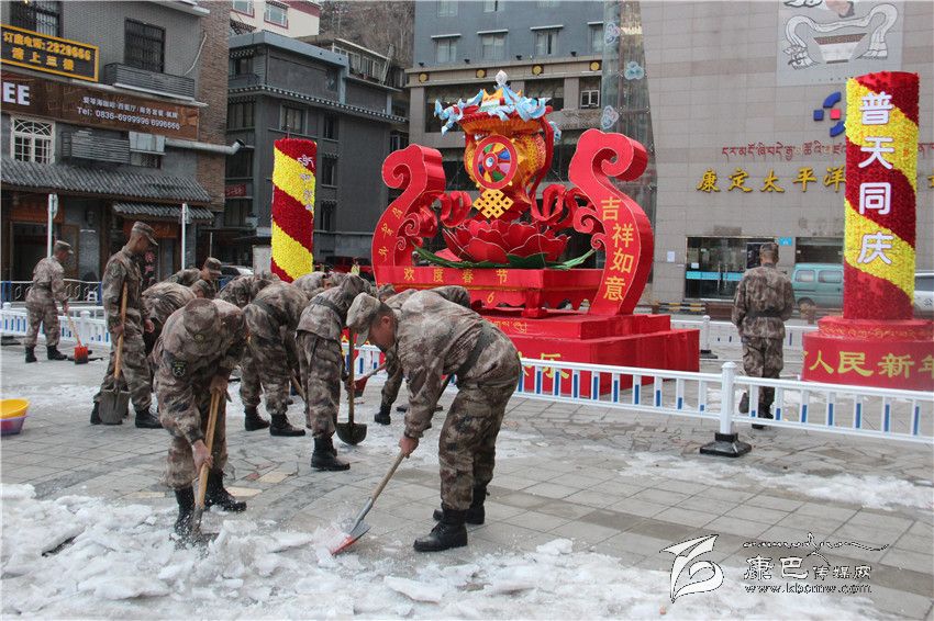 情歌廣場,官兵們鏟除冰雪,除去塵土垃圾,留下一片潔凈美好;福利院里,官兵們?yōu)槔先藵{洗衣物、打掃衛(wèi)生、理發(fā)洗頭,忙得不亦樂乎。幾位女兵還專門為老人們送去了自編自演的節(jié)目,這個“一家人”的溫馨聚會,讓老人們倍感高興、倍感溫暖。而此刻,遠(yuǎn)在道孚的分區(qū)部隊某營官兵的愛民助民活動也進(jìn)行的如火如荼。
