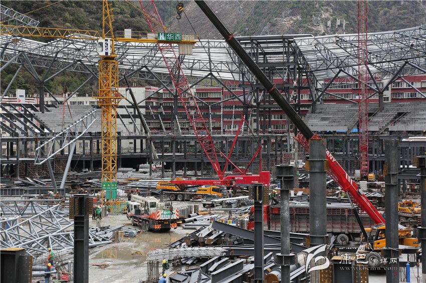 從規(guī)劃上看,高大上的新北門體育場(chǎng)堪稱甘孜州的“鳥(niǎo)巢”。由四川省第十三建筑公司承建的康定北門體育場(chǎng)改造工程,工程總投資2.4億元。截止目前,已完成投資1.4億元。停車場(chǎng)和看臺(tái)已初具規(guī)模;95%的鋼材已運(yùn)達(dá)建設(shè)現(xiàn)場(chǎng)。據(jù)工程負(fù)責(zé)人介紹,北門體育場(chǎng)改造工程每天有300多人在施工,預(yù)計(jì)7月初大部分工程可以完工。