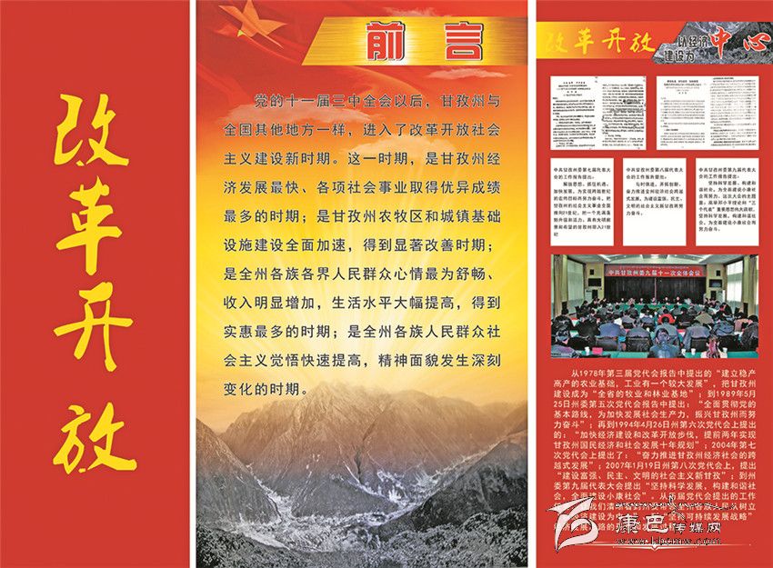 《甘孜州檔案館愛(ài)國(guó)主義教育基地》的整個(gè)展覽分為四大板塊。第一部分命名為“自治政權(quán)的建立”,向參觀者介紹了甘孜藏族自治州誕生的歷史過(guò)程;第二部分是“民主改革運(yùn)動(dòng)”,把人們帶回了那段不能忘記的烽火歲月;第三部分是“社會(huì)主義建設(shè)”,深情地回顧了在建設(shè)社會(huì)主義事業(yè)中我州所取得的不平凡的成就;第四部分是“改革開(kāi)放”,讓人們重溫了在改革開(kāi)放的大潮中所經(jīng)歷的那些充滿(mǎn)激情的經(jīng)歷。