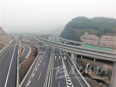 上午11時(shí)許,當(dāng)記者驅(qū)車(chē)到達(dá)對(duì)巖樞紐互通立交,用無(wú)人機(jī)從空中俯拍,這個(gè)縱橫交錯(cuò)、恢弘磅礴的交通樞紐,宛如盤(pán)旋在云端的銀龍,又似在大地上延伸的血脈,其造型、規(guī)模、結(jié)構(gòu)都令人嘆為觀止。